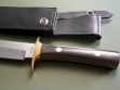 Summary: this is a dot 39th Brigade Bowie Knife made by the Lile shop for the Arkansas National Guard. This well documented Bowie knife has a 7” tool steel blade with unsharpened clip, double brass guard and black micarta slabs with brass pins. Full tang with red tang liners, overall length is 12”. This knife has not been used or resharpened, it’s been tucked away in a couple of collections for years and years. Amazing find, easily near mint condition.
