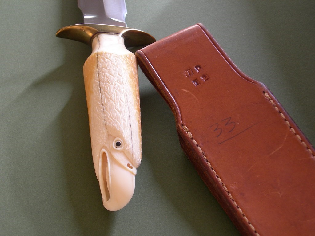 9 photos for review – as shown, a large black canvas case is included. This is a great knife / sheath package to tuck away for collection / investment purposes, I have not seen any pre-ban hand carved Lile’s for sale for years and years. Thanks and good luck.