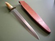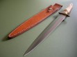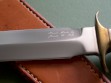 The sheath is original to the knife and was probably made by John Lamb. Sheath condition is excellent+++ or better, nothing but a few light spots on the front and light handling marks on the back. Very little in the way of knife storage marks, throat with a dim line but mostly clean.