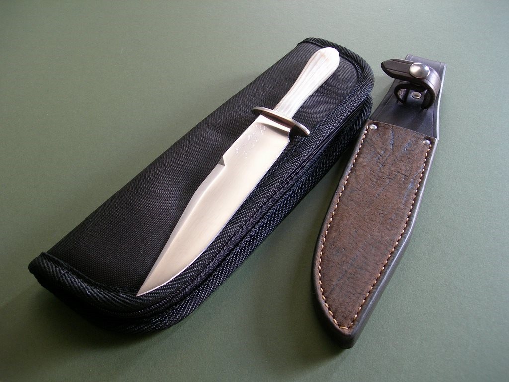 Summary: quite the rare one here and not so expensive that it'll break the bank. This knife never came with a sheath, it was shipped to Jim Behring a few years back and he made leather for it. Sweet!