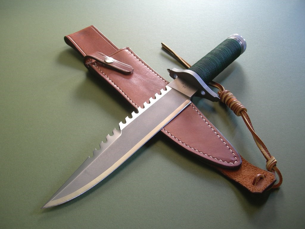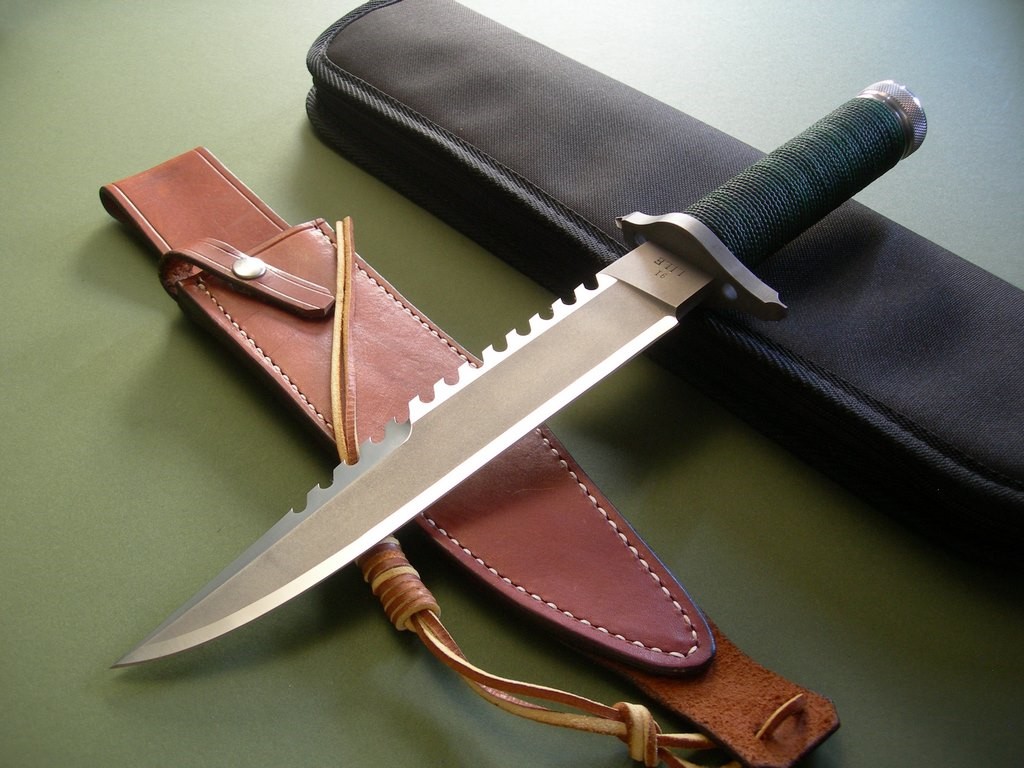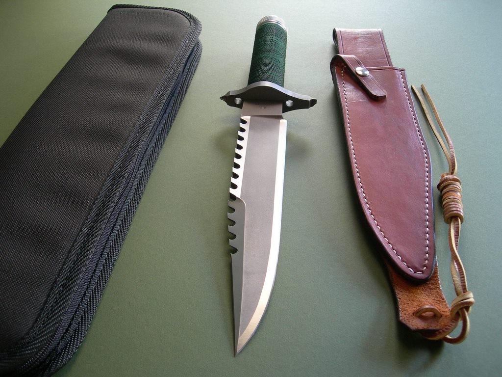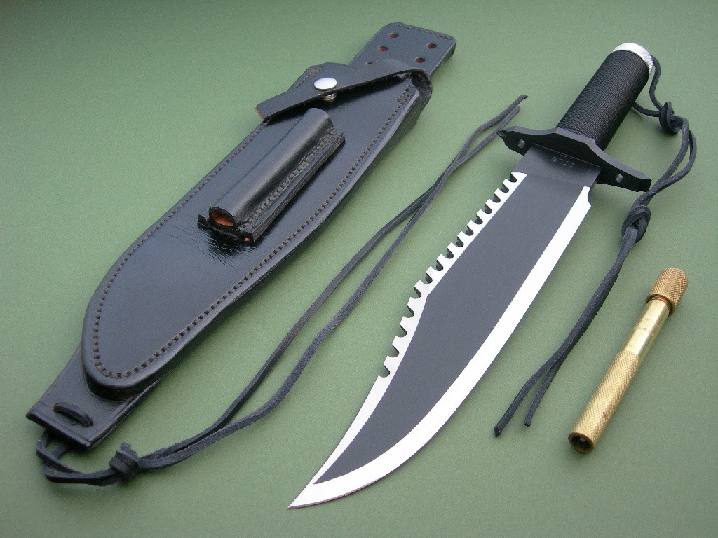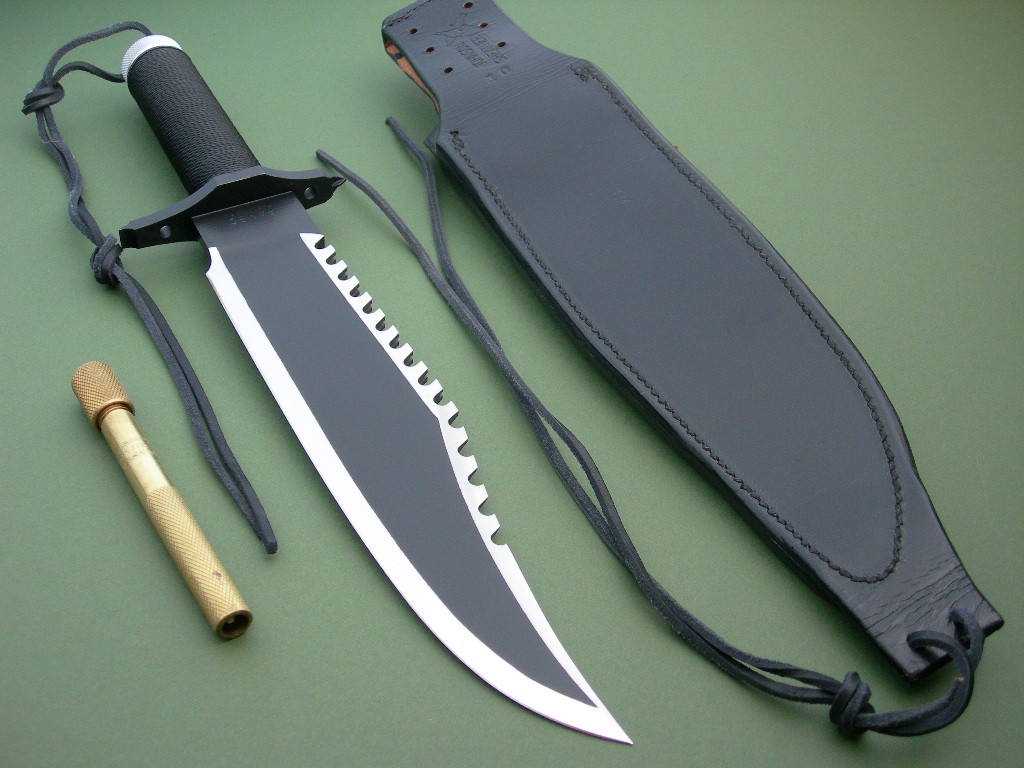 11 photos for review – as shown, the carry case is obviously included. Celebrate the opportunity and buy yourself an original numbered First Blood knife -- can you believe it's been more than 40 years since the first movie hit the theaters!?! Jimmy made knives for the first two movies along with hand axes & double bit hatchets that never made it in to the movie, these First Blood knives are hands down the most iconic knives of all time. You’ve always wanted one... right? Well, here’s your chance to get one AND the matching 2nd movie knife. Thanks and good luck.