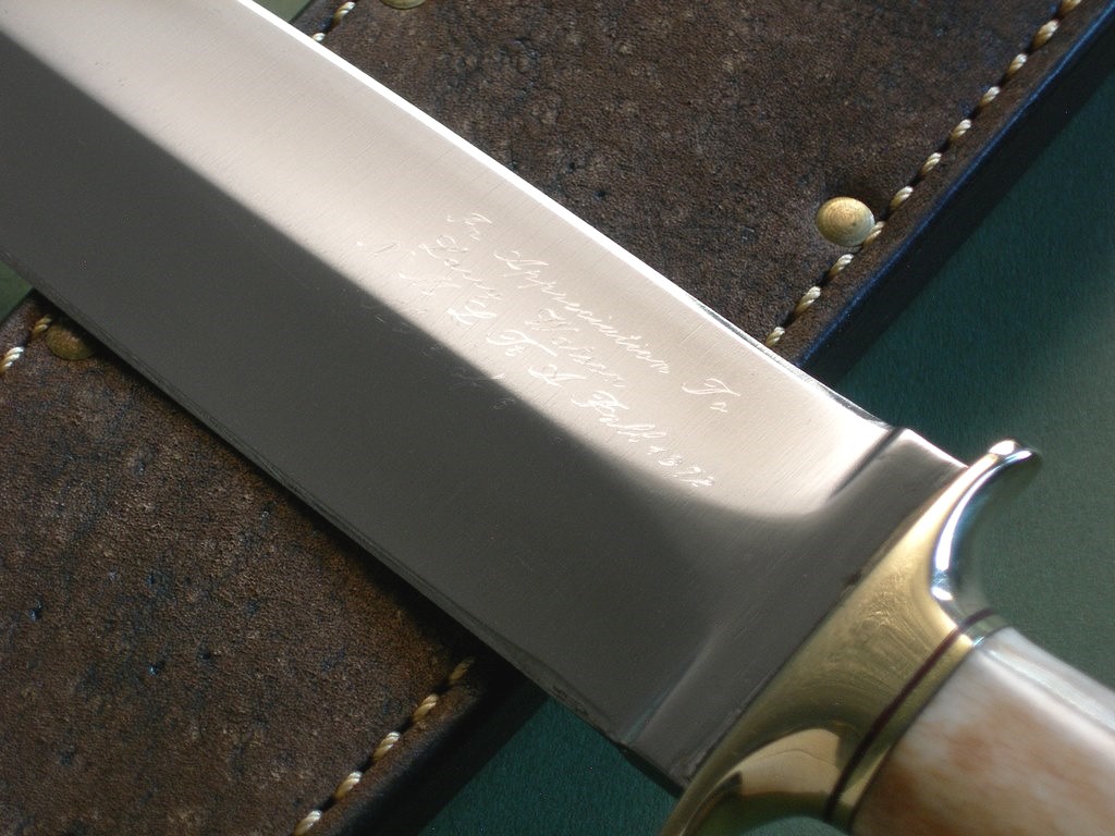 The sheath is custom and was made by Jim Behring as I don’t believe any of these NMLRA knives came with leather. Custom made for the knife, mint condition.