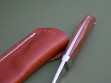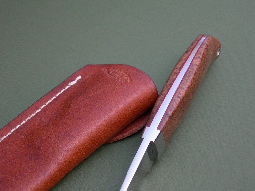 The sheath is original to the knife, brand new with the R.W. Loveless Knives stamping at the top edge near the throat. The sheath is "as new”... near mint with just a couple of very small handling / scuff marks.