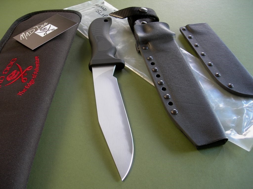 6 photos for review – as shown, a new Mad Dog Knives carry case is included. This is an excellent MD for heavy-duty use – brand new so it’s also perfect for collection / investment purposes. Satisfaction guaranteed, if it's good enough for the Navy Seals (and it is) then I'm betting it'll be more than enough knife for you. These sold out pretty quick last time around, limited number so if you’re in the market don’t miss out. Nice with the extra slip sheath ($100 cost) and MDJMD etching... thanks and good luck.