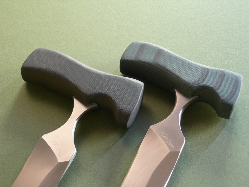 Summary: version 2 Mad Dog Push Daggers, 5 black and 5 black and green These have a 4” double edged hand-sanded blades, each measures 5” from the tip all the way back to the composite handle. These are individually signed by “Mad Dog”, coolness factor is over the top. 6-1/4” overall length, simply perfect for discreet EDC.