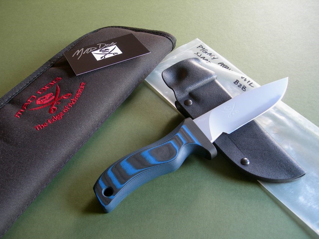 5 photos for review – as shown, a new embroidered Mad Dog carry case is included. This is the perfect piece for the guy who is looking for a smaller 1/4" blade stock Mad Dog for hard use, these Pygmy ATAK's can and will take an ass kicking. There's no better knife for EDC so do yourself a favor and put a Mad Dog on your hip! These Pyg ATAK’s have been on back-order for about half a year, no more on order. Thanks and good luck.