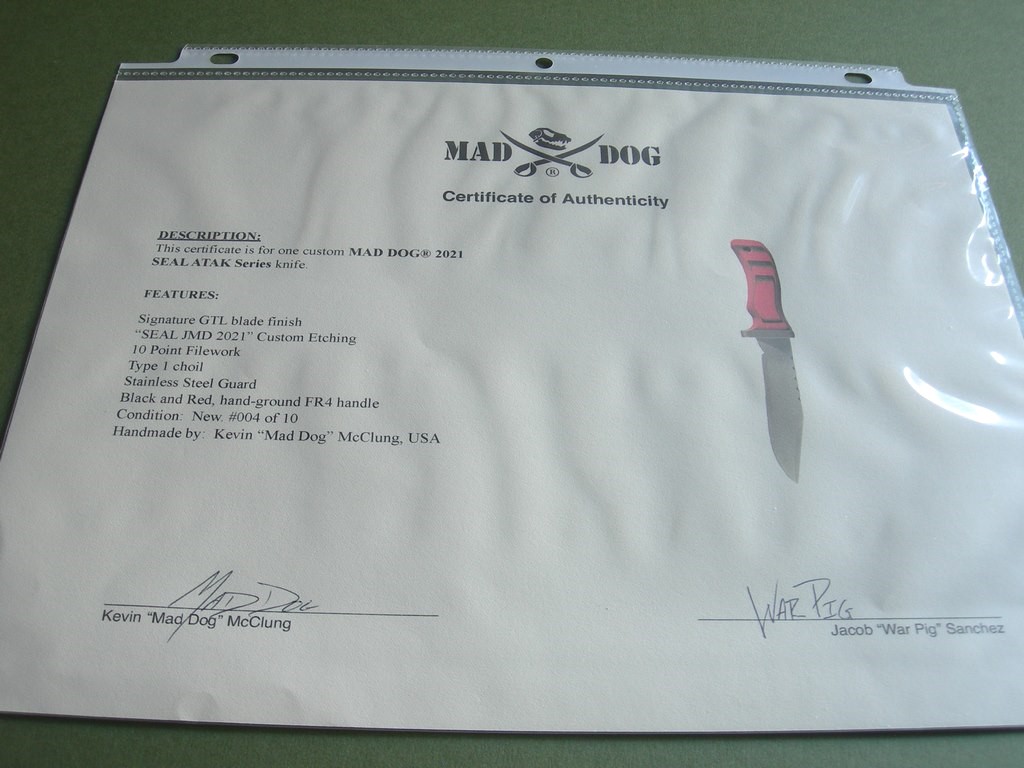 9 photos of the #004 SEAL ATAK for review -- each SEAL ATAK comes with a new Mad Dog Knives carry case. Layaway available with a 25% deposit... email if you want some type of layaway plan. Thanks and good luck.