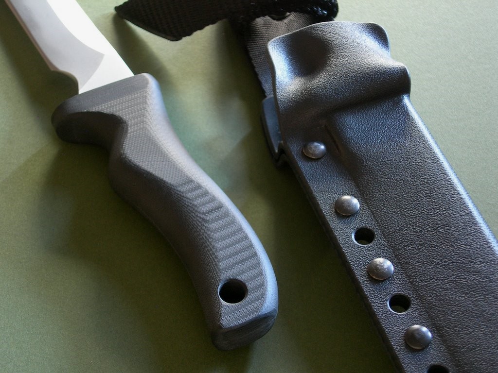 The knife comes with not one but THREE original sheaths: ATAK, high ride & slip sheaths. Mint condition.