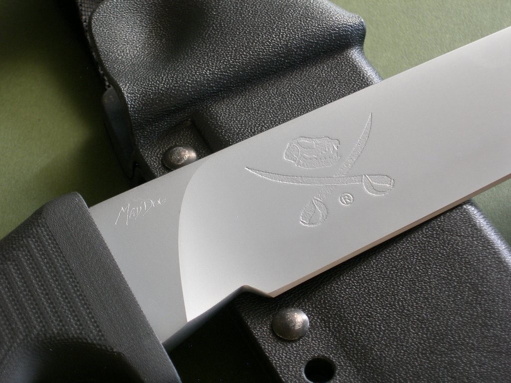 7 photos for review – as shown, a new embroidered Mad Dog carry case is included. This model is outrageously nice with the tanto blade, VVTL finish and custom etch, it's a very rare model and you could wait a long, long time to find another like it. It looks wickedly nice and feels even better in hand, a perfect Mad Dog knife for collection / investment purposes. Great price on a long-bladed Mad Dog knife... thanks and good luck.