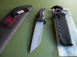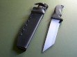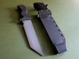 Summary: this is a brand new Mad Dog Knives "Taiho", a tanto blade grind made from 1/4" stock. This knife has a 7" blade with VVTL finish and the small JMD trademark, overall length is 12". The handle material is the proprietary glass / epoxy composite -- compression bonded to the hidden full tang and incredibly ergonomic. This knife is brand new and in mint condition.