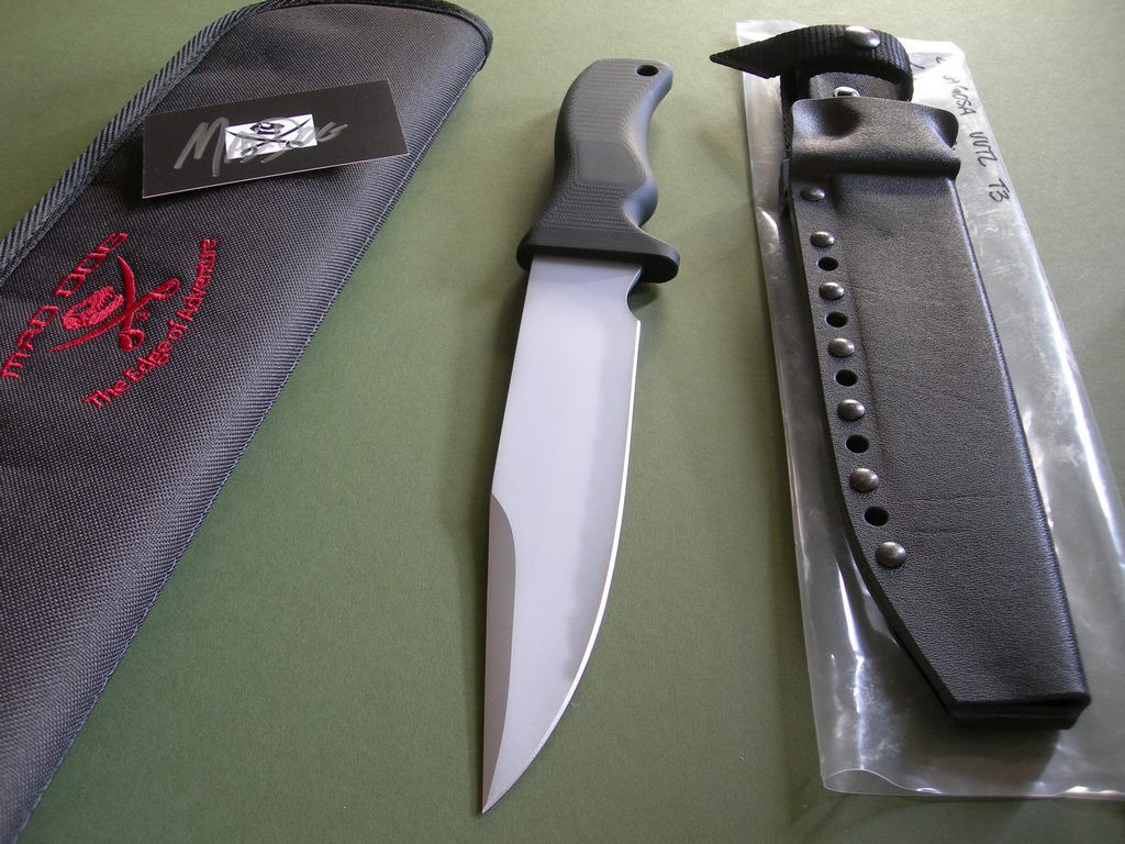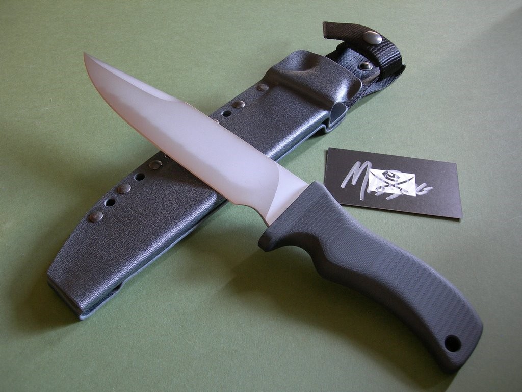 The knife has a 7-3/4" blade with VVTL finish, large JMD and custom T3 choil. The black composite handle material is the proprietary glass / epoxy composite -- compression bonded to the hidden full tang and incredibly ergonomic. The upper clip is sharp – overall length is 12-3/4". Serial #004, mint condition.