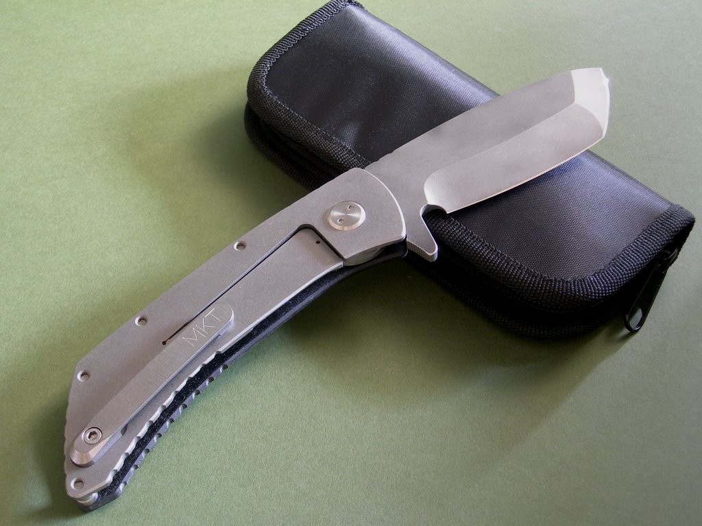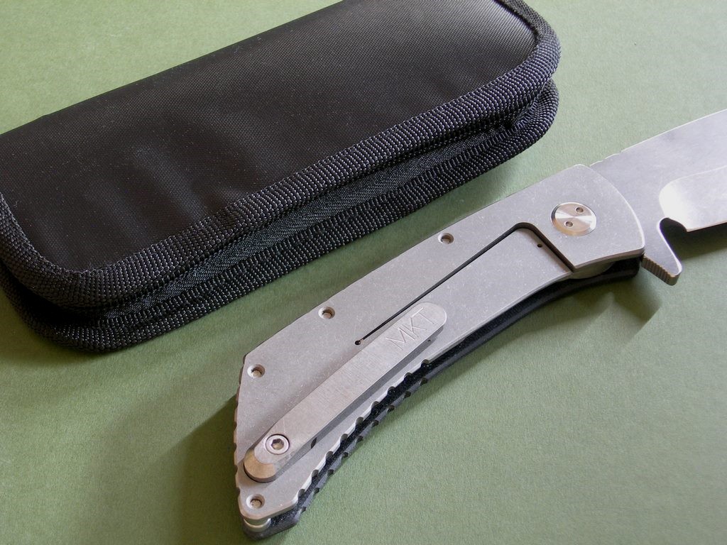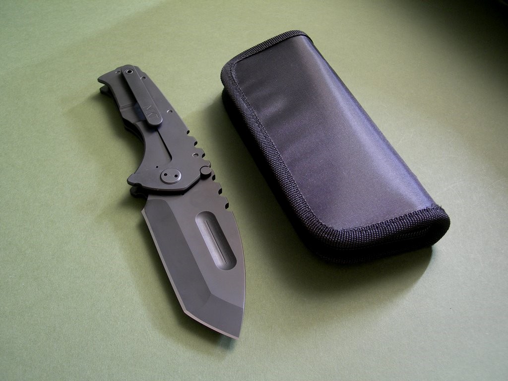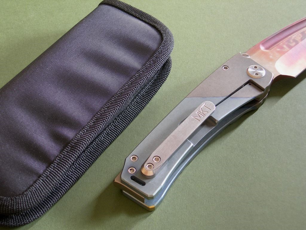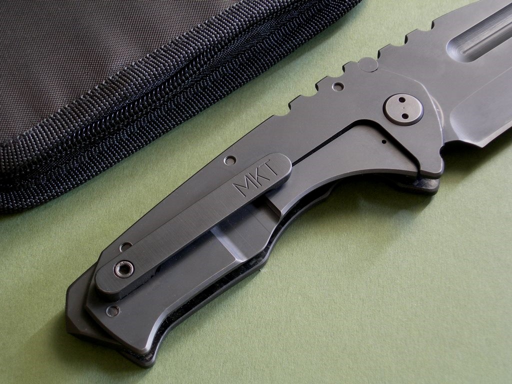 Photos 1 through 6: Custom Ti Marauder Tanto Flamed Blade