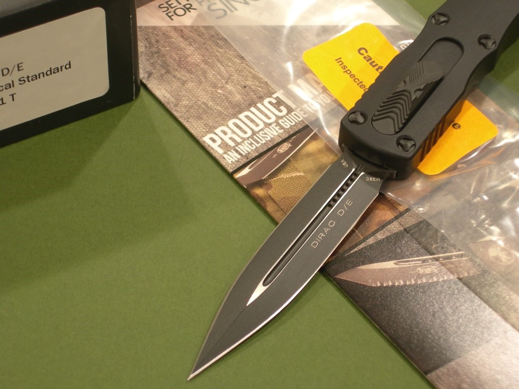 The Dirac is the first Microtech double action knife with a cover firing slider. The extremely ergonomic chassis features curved lines similar to the HALO for a slightly different feel, compared to other handles. They researched this particular OTF design and applied their signature ultra-high tolerance Microtech features such as proprietary hardware, innovative internal mechanism, and glass breaker. With an overall length of 7.25 inches, the Dirac is just right for an everyday knife.