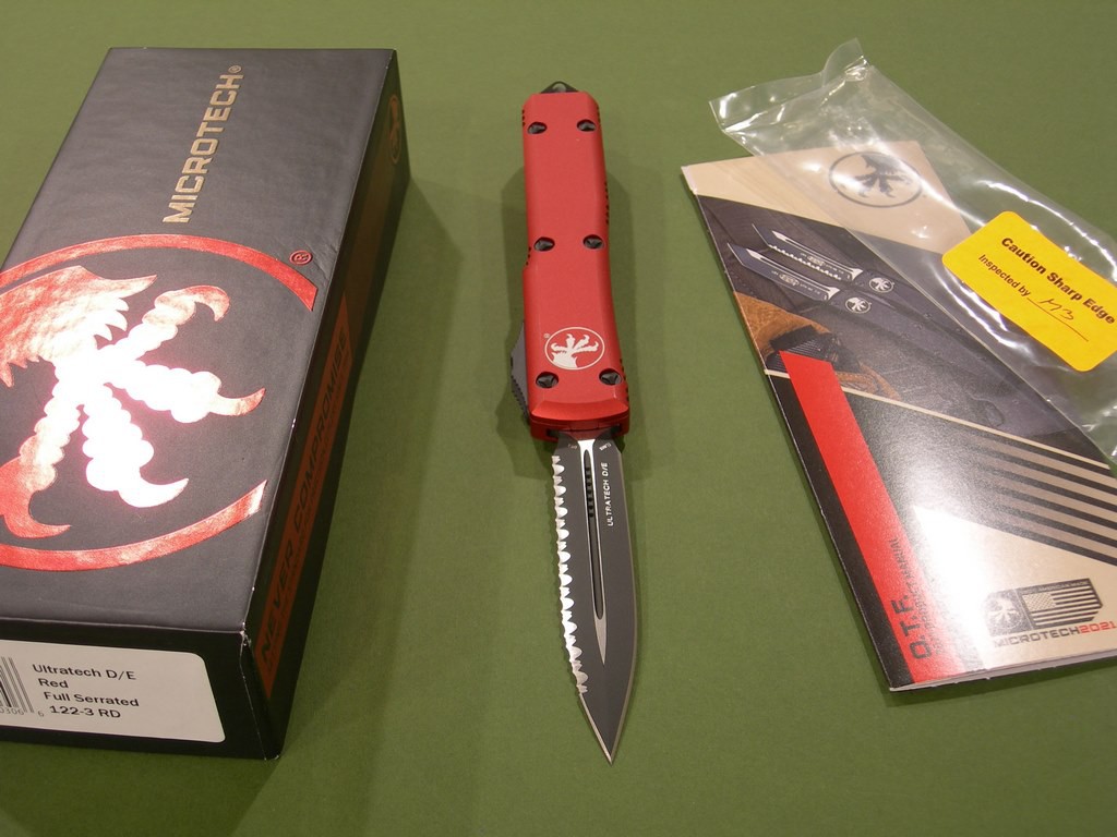 Microtech Ultratech D/E Red Full Serrated 122-3 RD