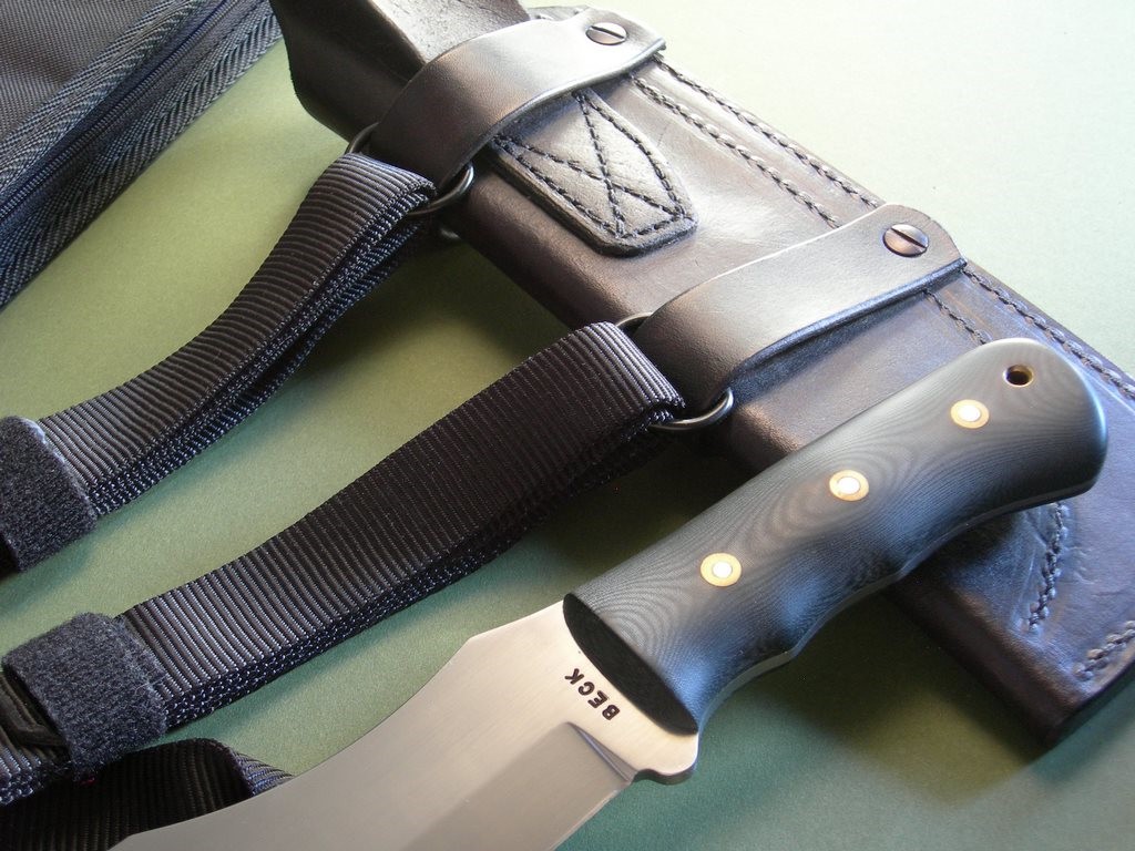 The knife is paired to the original Beck-made friction-fit black leather belt sheath It can also be worn in the horizontal carry position (behind the back), the sheath is extremely well made and in excellent+++ condition with just a few very light handling marks. As noted above, it has the optional Scout loops and shoulder strap.