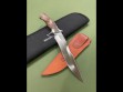 The contoured handles of stabilized, heirloom Turkish Walnut showcase burl and figure that only select pieces normally exhibit. A fine leather sheath, masterfully handcrafted by Nita Broadwell accompanies each knife.