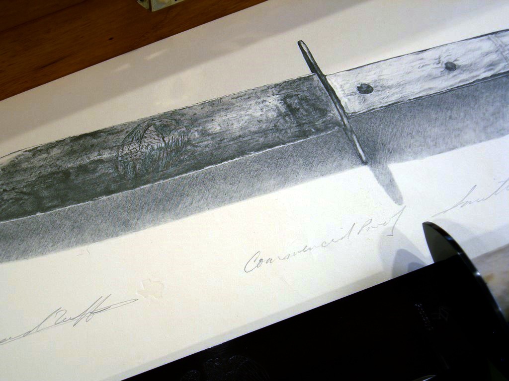 Summary: this is the Jack Crain PROTOTYPE Noah Smithwick Bowie AND the original hand drawn, hand signed, embossed seal Commercial Proof with embossed seal.