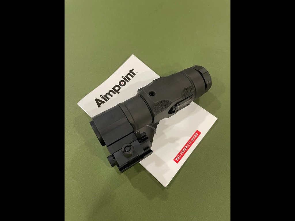 Summary: brand new in box Aimpoint 6x magnifier with the twist mount. Attach to your picatinny and fold it out of the way when mounted. Or, with a press of a button remove the magnifier from your rifle and use it as a 6x monocular.
