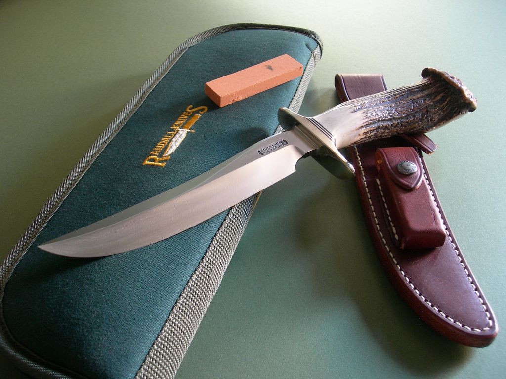 8 photos for review -- as shown, a custom Randall Knives carry case is part of the deal. The is a very popular knife as it's well suited for many tasks, large and small. A model perfect for camping and hunting, if you like crown stag handled Randall's you've gotta love the build. Thanks and good luck.