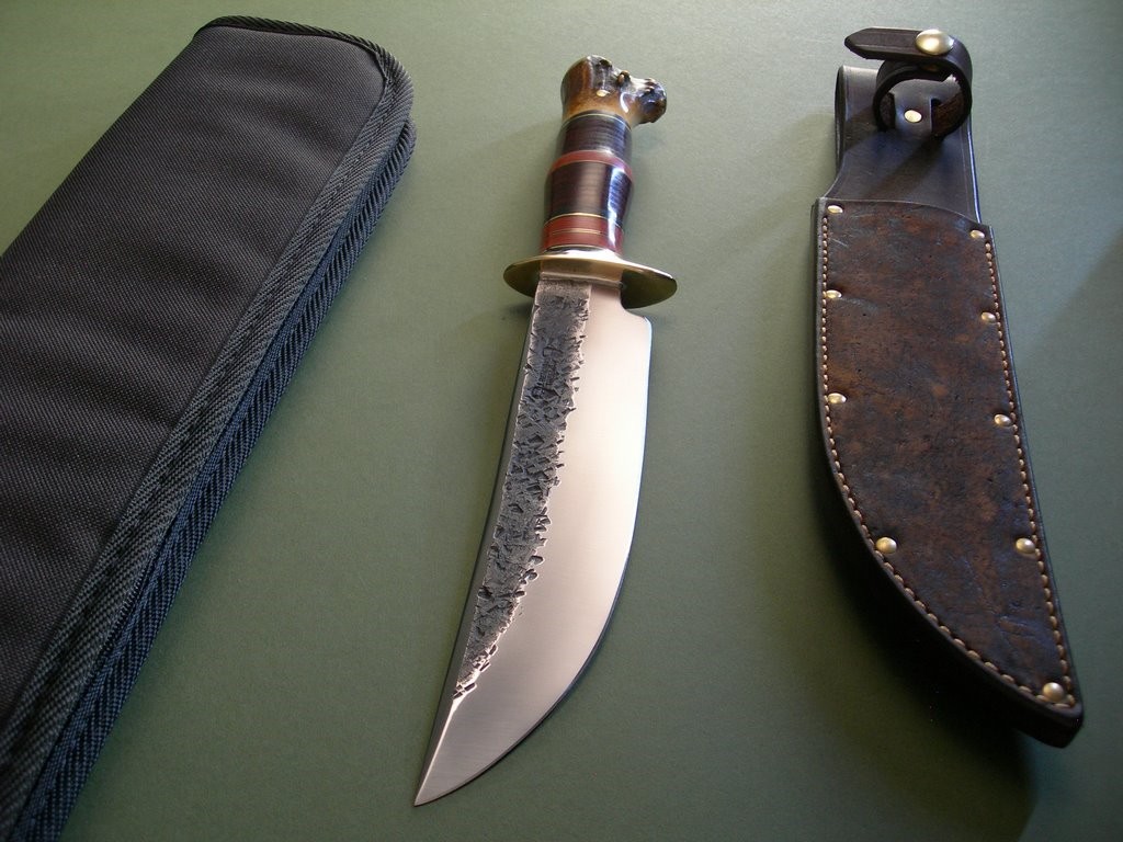 7 photos for review – as shown, a new black canvas carry case is included. This is a great price one one of Jim’s fighters, where else can you find a completely hand made, hand forged knife and custom sheath under $100 per blade inch? Not too many places, and most certainly not of Jim's quality. Sure to appreciate in price at some point down the road, grab what you can and tuck them away for long term investment purposes. Thanks and good luck.