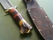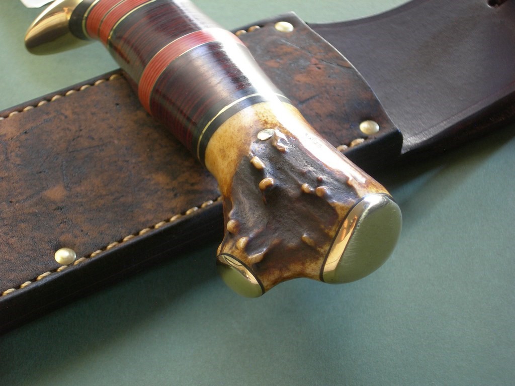 Summary: this is a sweetheart of a fighter made by Jim Behring. The knife is brand new from the maker, unused and in perfect condition. Razor sharp edge, brass guard and brass caps on the crotch stag handle. Super nice, over the top attention to detail. This fighter feels perfect in either hand, made from 3/16” stock with really nice balance. Overall length is right at 13-1/4”.