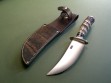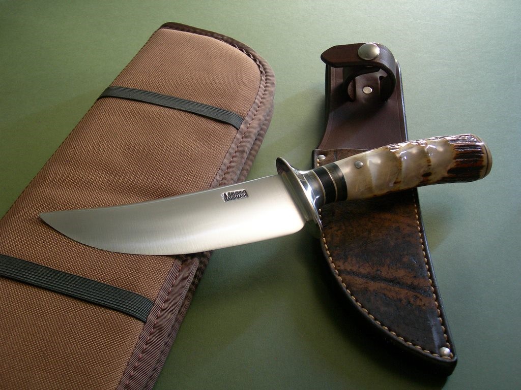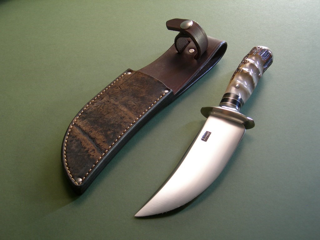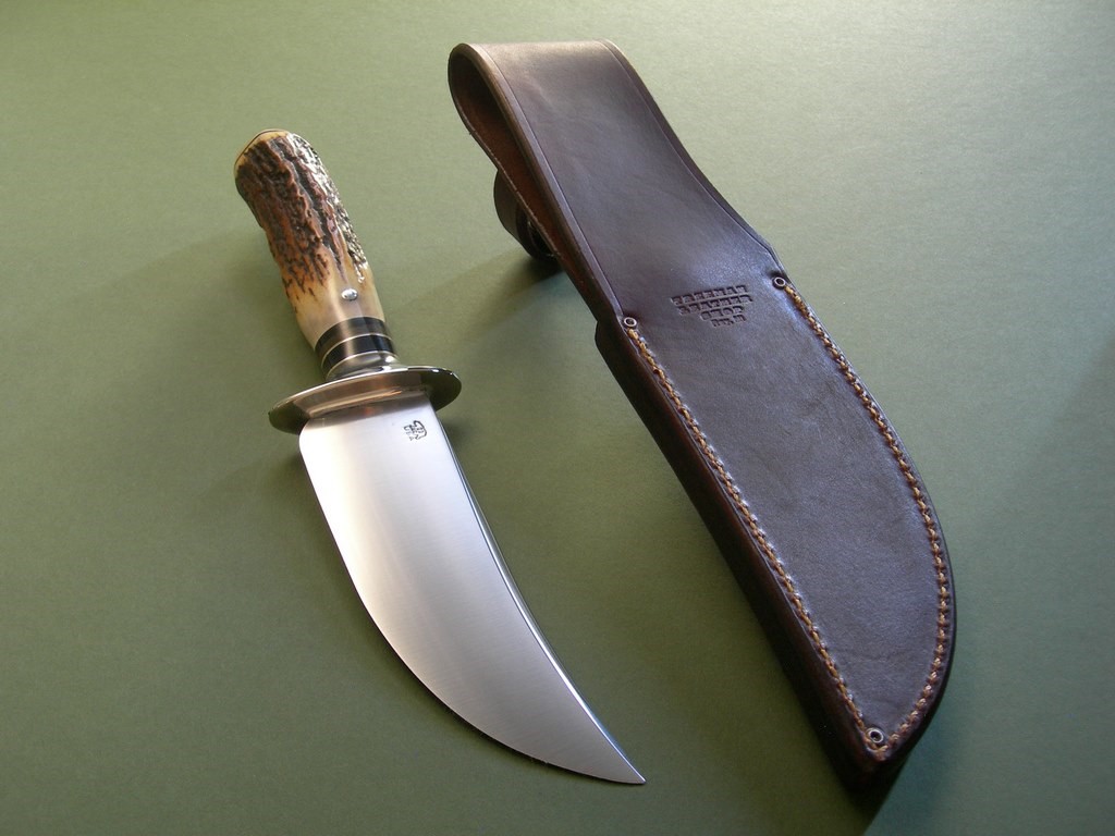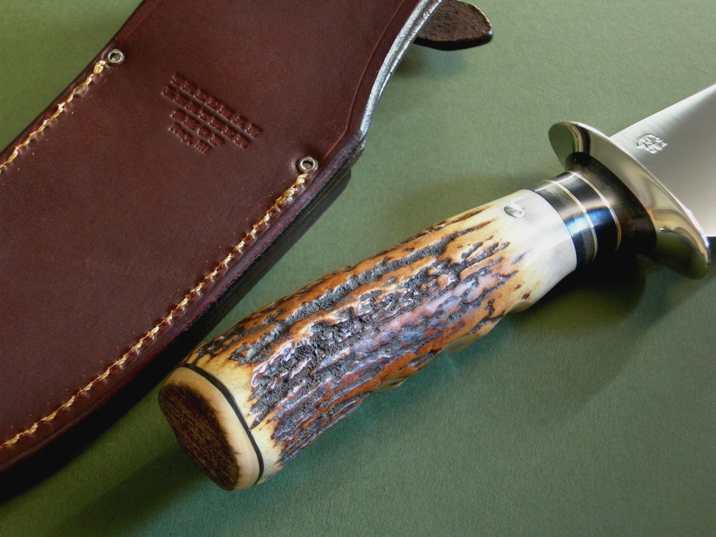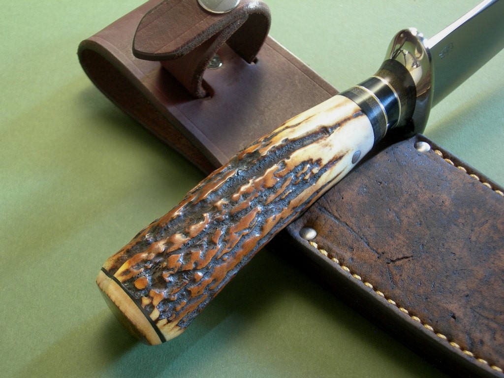 Summary: I see a lot of knives on a regular basis and this is probably the sweetest all around skinner I’ve seen in quite some time. The blade grind, big nickel guard, nice spacer stack, drop dead gorgeous fingered stag AND a mammoth ivory butt cap at the ass end. Eye candy? Ooooh yeah…. and in mint condition.