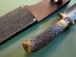 The custom sheath is original to the knife and made right there in the Treeman shop. Fitted with a shark panel front, fit and finish second to none. Gorgeous work, handmade from start to finish… mint condition.