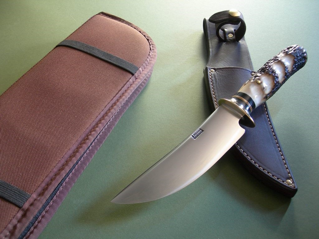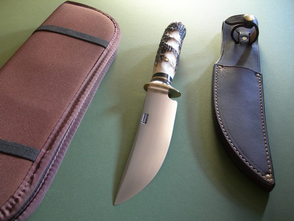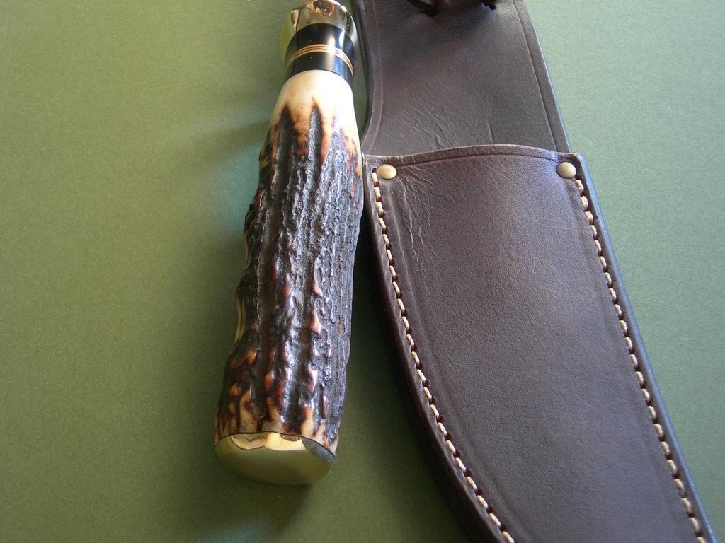 7 photos for review – as shown, a new brown canvas carry case is included. Jim's fingered stag hunters are the cats meow, this one would be perfect for everyday carry / hunting purposes. It's a great knife that’ll fit nicely under the Christmas tree, make that someone special in your family one very happy camper Thanks and good luck.