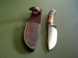 The knife is paired to the original Behring-made riveted belt sheath with Giraffe front panel. Outstanding quality, made right there at the Treeman shop so the fit is perfect. No messing around sending the knives out for leather, Jim and Rocco do it all in house.