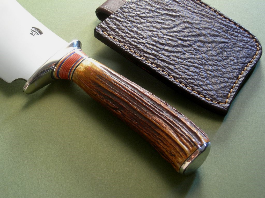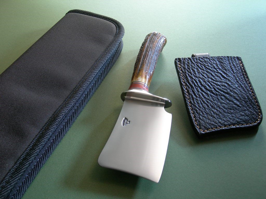7 photos for review – I’ll pack it carefully in the carry case shown. This is a really neat, custom piece.. I have two of these and both have awesome stag and slightly different sheaths. As an investment for your collection.. you can’t lose. If you’re buying it to use... you can’t lose. Get the picture? You can’t lose!! Chop chop!! Thanks and good luck.